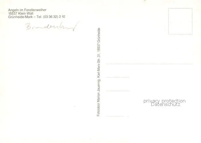 Gruenheide_Mark Forellenanlage Klein Wall Forellenweiher Angeln Gruenheide Mark postalisch nicht gelaufen nach 1965 Erhaltung siehe scans [FriedD77] Frierer