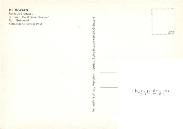 Gruenwald_Muenchen Rathaus Brunnen Die 3 Generationen Burg Gruenwald Kath Kirche Peter und Paul Gruenwald Muenchen postalisch nicht gelaufen nach 1965 Erhaltung siehe scans [WerneD78] WernPID7