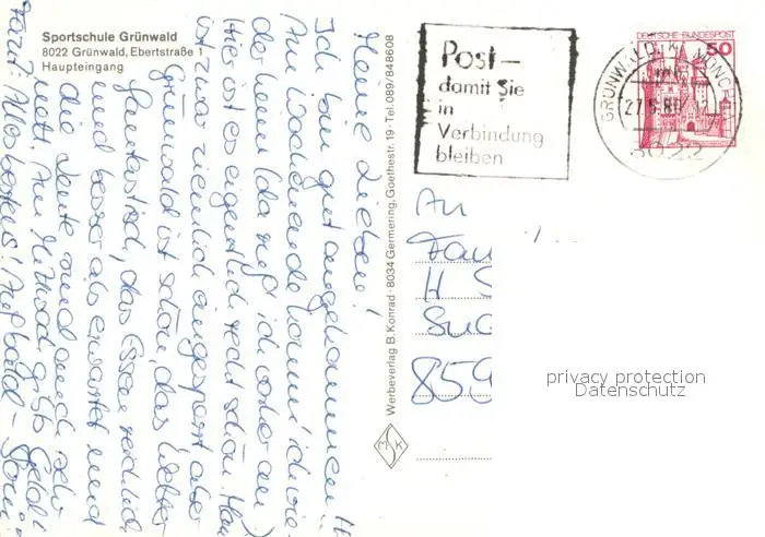 Gruenwald_Muenchen Sportschule Gruenwald Eingang Gruenwald Muenchen postalisch gelaufen 1980 Erhaltung siehe scans [WerneD78] WernPID7