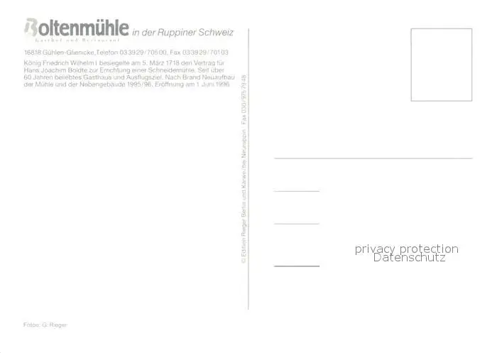 Guehlen_Glienicke Gasthof Restaurant Boltenmuehle Ruppiner Schweiz Guehlen_Glienicke postalisch nicht gelaufen ca. 1996 Erhaltung siehe scans [FriedD77] Frierer
