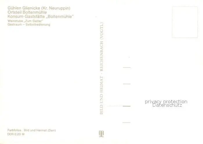 Guehlen_Glienicke Konsum Gaststaette Boltenmuehle Guehlen_Glienicke postalisch nicht gelaufen 1985 Erhaltung siehe scans [FriedD77] Frierer