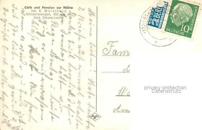 Guendelwangen Cafe Pension zur Muehle Guendelwangen postalisch gelaufen 1921-1965 Erhaltung siehe scans [WerneD78] WernPID7