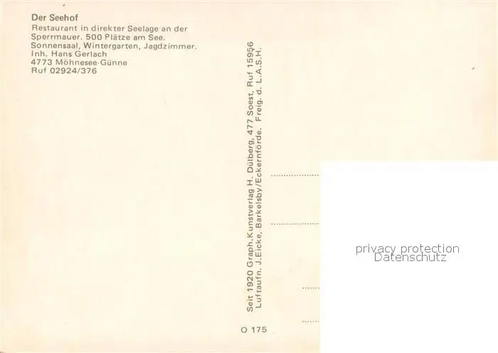 Guenne_Moehnesee Der Seehof Restaurant an der Sperrmauer Fliegeraufnahme Guenne Moehnesee postalisch nicht gelaufen nach 1965 Erhaltung siehe scans [WerneD78] WernPID7