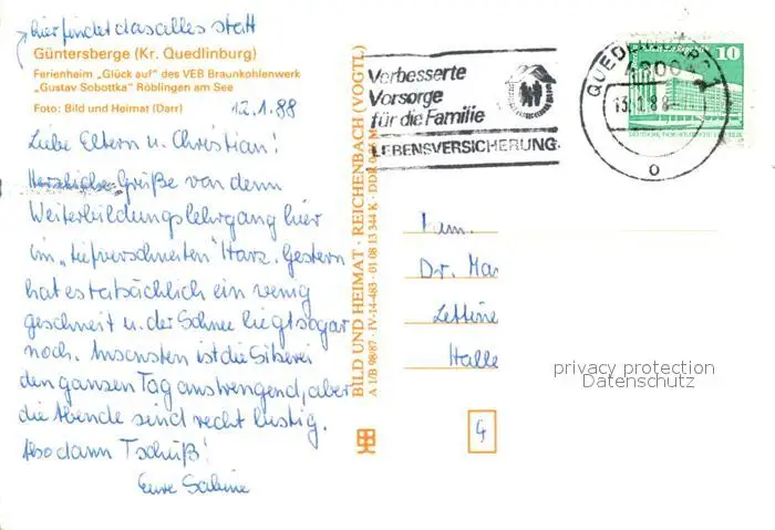 Guentersberge Ferienheim Glueck auf Guentersberge postalisch gelaufen 1988 Erhaltung siehe scans [PaolaD17] PaolPID1