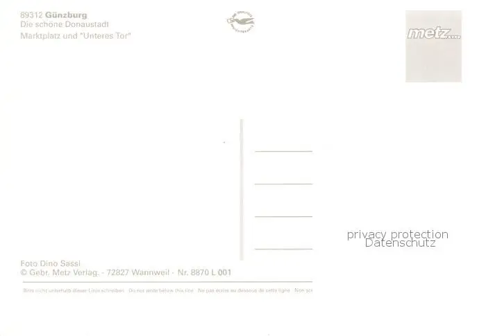 Guenzburg Marktplatz und Unteres Tor Guenzburg postalisch nicht gelaufen nach 1965 Erhaltung siehe scans [WerneD78] WernPID7