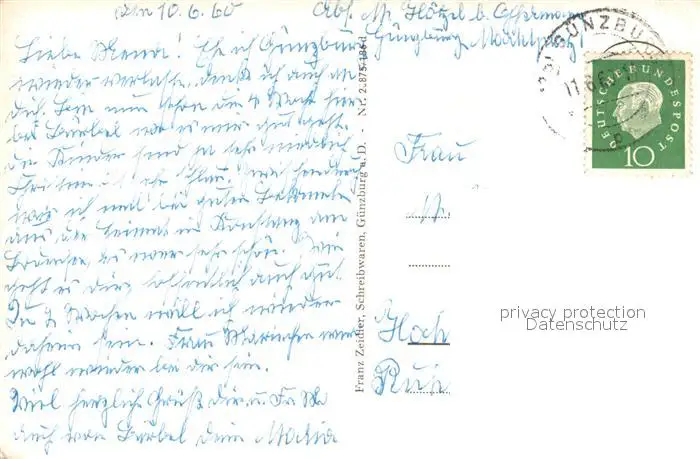 Guenzburg Stadtansichten Guenzburg postalisch gelaufen 1960 Erhaltung siehe scans [KathaD81] Kathoren