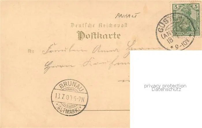 Guesten_Anhalt Kategorie Alte Ansichtskarten Postkarten bx76275 Guesten_Anhalt Muellers Hotel Deutsches Haus Kaiserliches Postamt Bahnhof Guesten_Anhalt postalisch gelaufen 1900 Erhaltung siehe scans [KathaD81]