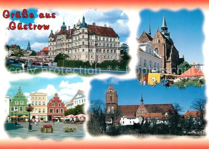 AK / Ansichtskarte Guestrow_Mecklenburg_Vorpommern Rathaus Kirche Marktplatz Schloss Dom Guestrow_Mecklenburg