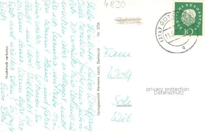 Guetersloh Botanischer Garten Guetersloh postalisch gelaufen 1961 Erhaltung siehe scans [LiesaD40] LiesID40