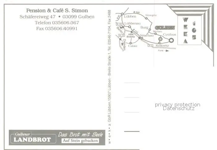 Gulben Pension Cafe Simon Gastraeume Gulben postalisch nicht gelaufen nach 1965 Erhaltung siehe scans [WerneD78] WernPID7