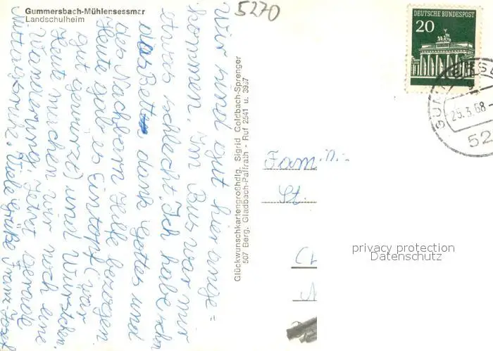 Gummersbach Landschulheim Aussenansicht Gummersbach postalisch gelaufen 1968 Erhaltung siehe scans [LiesaD40] LiesID40