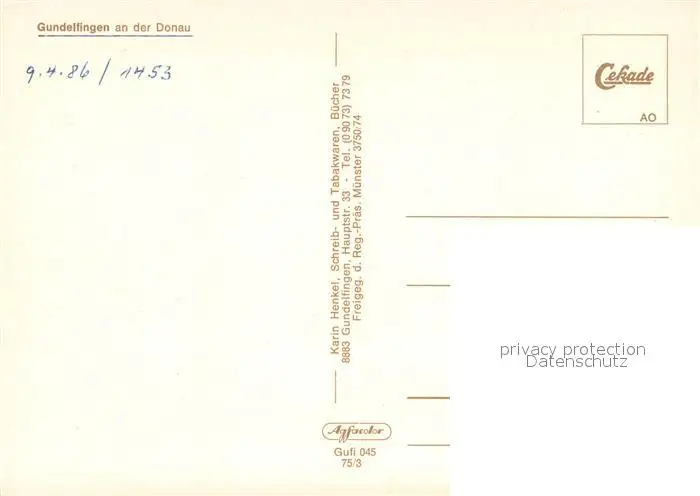 Gundelfingen Donau Kategorie Alte Ansichtskarten Postkarten bx93476 Gundelfingen_Donau Fliegeraufnahme Gundelfingen Donau postalisch nicht gelaufen 1986 Erhaltung siehe scans [WerneD78]