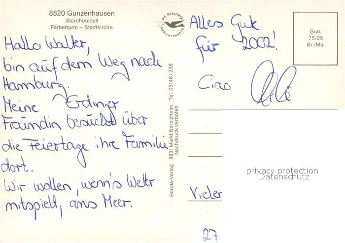 Gunzenhausen_Altmuehlsee Storchenidyll Faerberturm Stadtkirche Gunzenhausen Altmuehlsee postalisch nicht gelaufen nach 1965 Erhaltung siehe scans [FriedD77] Frierer