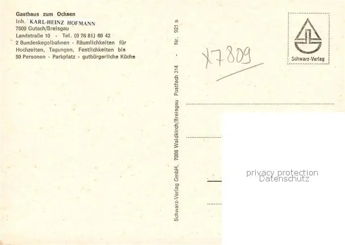 Gutach_Breisgau Gasthaus zum Ochsen Kegelbahn Gutach Breisgau postalisch nicht gelaufen nach 1965 Erhaltung siehe scans [KathaD81] Kathoren