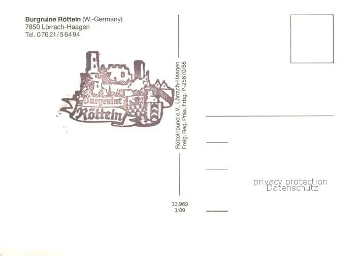 Haagen_Loerrach Burgruine Roetteln Fliegeraufnahme Haagen Loerrach postalisch nicht gelaufen nach 1965 Erhaltung siehe scans [WerneD78] WernPID7