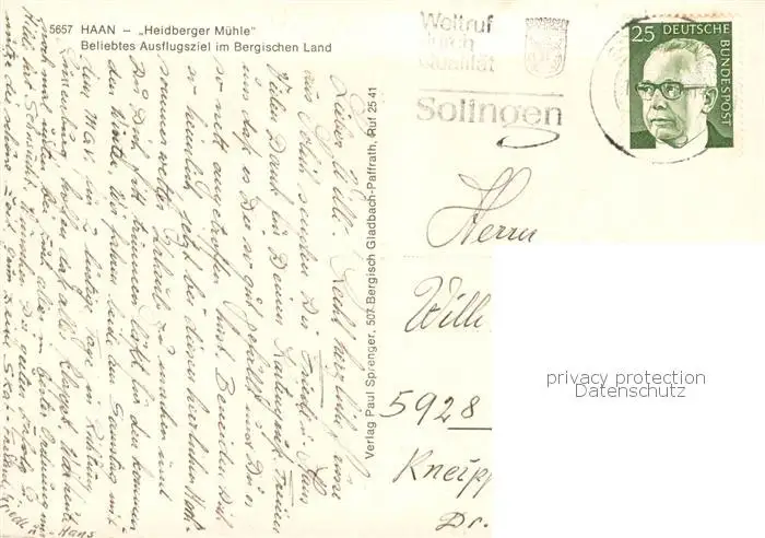 Haan_Rheinland Heidberger Muehle Ausflugsziel Bergisches Land Haan_Rheinland postalisch gelaufen 1971 Erhaltung siehe scans [FriedD77] Frierer