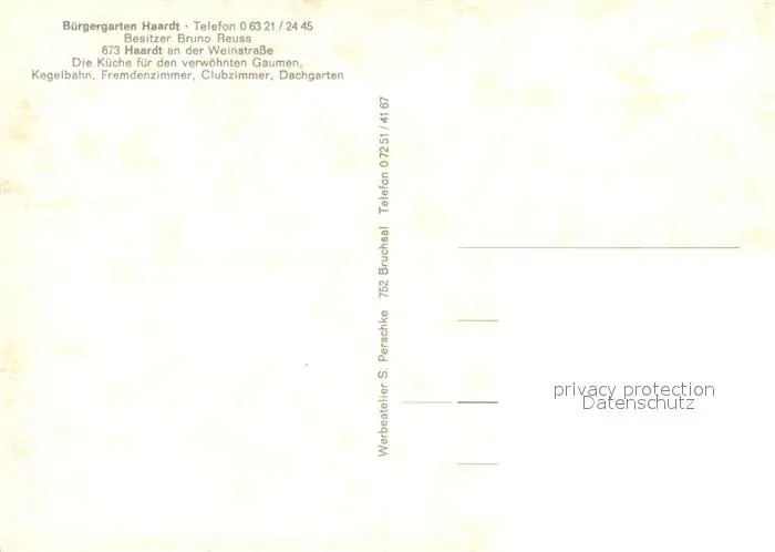 Haardt_Weinstrasse Buergergarten Haardt Restaurant Haardt_Weinstrasse postalisch nicht gelaufen nach 1965 Erhaltung siehe scans [FriedD77] Frierer