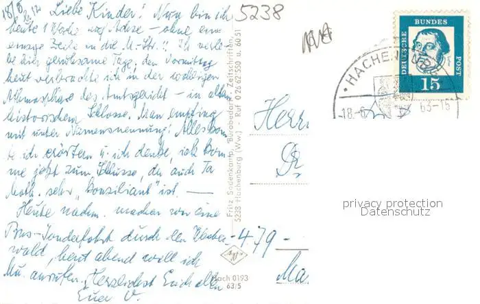 Hachenburg_Westerwald Alter Markt m. Brunnen Fachwerkhaeuser Autos Hachenburg_Westerwald postalisch gelaufen 1963 Erhaltung siehe scans [LiesaD40] LiesID40