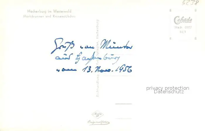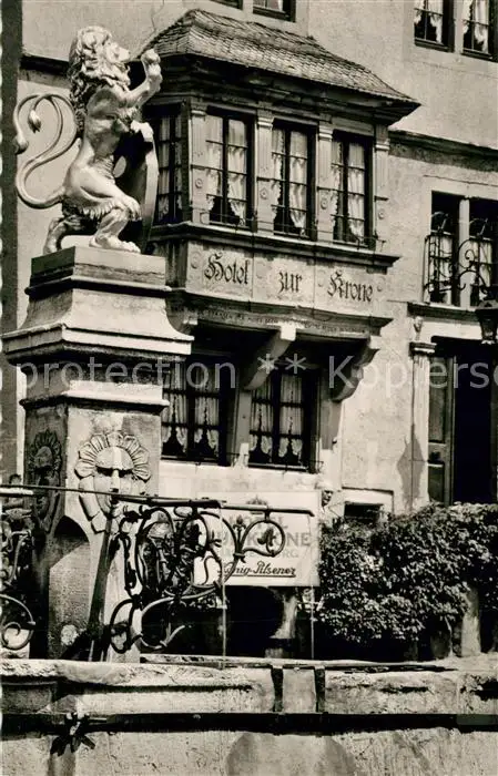Hachenburg_Westerwald Marktbrunnen und Kronenstuebchen Hotel zur Krone Hachenburg_Westerwald postalisch nicht gelaufen 1956 Erhaltung siehe scans [FriedD77] Frierer