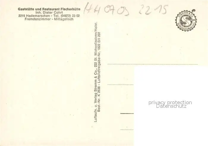 Hademarschen Kategorie Alte Ansichtskarten Postkarten bx45477 Hademarschen Restaurant Fischerhuette Fliegeraufnahme Hademarschen postalisch nicht gelaufen nach 1965 Erhaltung siehe scans [LiesaD40]