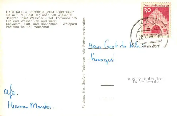 Haeg Ehrsberg Kategorie Alte Ansichtskarten Postkarten bx64447 Haeg Ehrsberg Gasthaus Pension Zum Forsthof Haeg Ehrsberg postalisch gelaufen 1969 Erhaltung siehe scans [KathaD81]