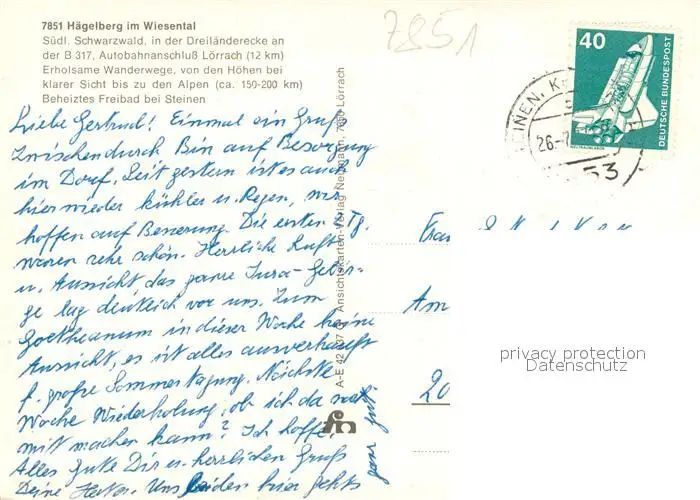Haegelberg Panorama Wiesental mit Blick nach Steinen Neusiedlung Erholungsheim Ehrenmal am Brunnen Haegelberg postalisch gelaufen 1977 Erhaltung siehe scans [FriedD77] Frierer