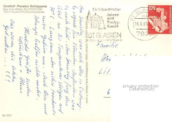 Haeusern_Schwarzwald Gasthof Pension Schoepperle Gaststube Fliegeraufnahmen Haeusern Schwarzwald postalisch gelaufen 1985 Erhaltung siehe scans [WerneD78] WernPID7
