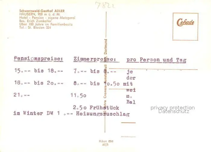 Haeusern_Schwarzwald Hotel Adler Terrasse Gastraeume Haeusern Schwarzwald postalisch nicht gelaufen nach 1965 Erhaltung siehe scans [WerneD78] WernPID7