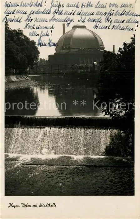 Hagen_Westfalen Volme mit Stadthalle Hagen_Westfalen postalisch gelaufen 1921-1965 Erhaltung siehe scans [WerneD78] WernPID7