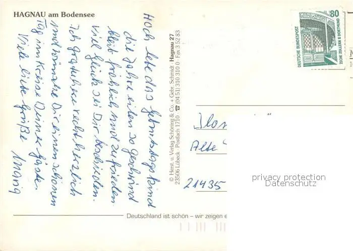 Hagnau_Bodensee Blick zur Kirche Hagnau Bodensee postalisch gelaufen nach 1965 Erhaltung siehe scans [FriedD77] Frierer