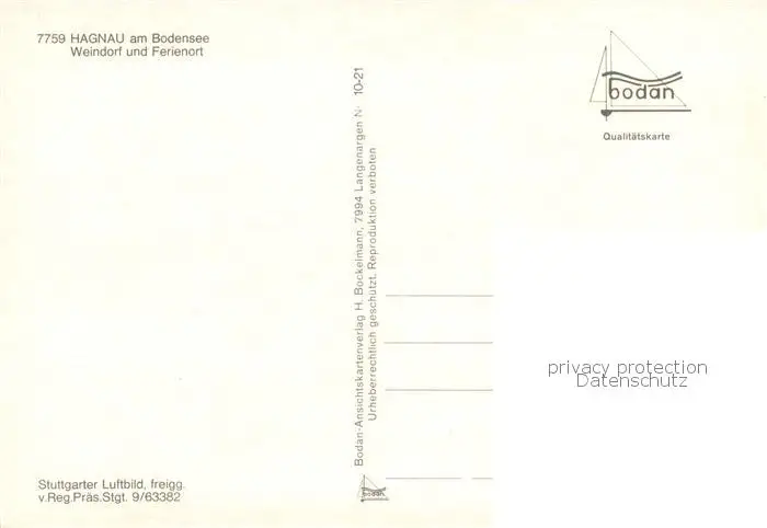 Hagnau_Bodensee Fliegeraufnahme Hagnau Bodensee postalisch nicht gelaufen nach 1965 Erhaltung siehe scans [FriedD77] Frierer