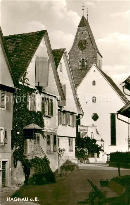 AK / Ansichtskarte Hagnau_Bodensee Teilansicht Gasse Kirchturm Hagnau Bodensee