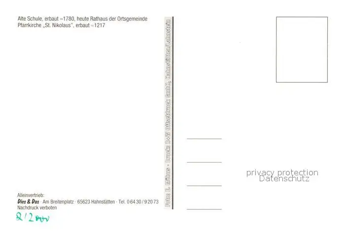 Hahnstaetten Alte Schule Rathaus Pfarrkirche Sankt Nikolaus Hahnstaetten postalisch nicht gelaufen nach 1965 Erhaltung siehe scans [KathaD81] Kathoren