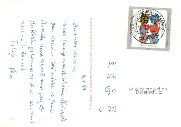 Haidholzen Kirche Brunnen Statue Ladengeschaeft Segeln Haidholzen postalisch gelaufen 1991 Erhaltung siehe scans [FriedD77] Frierer