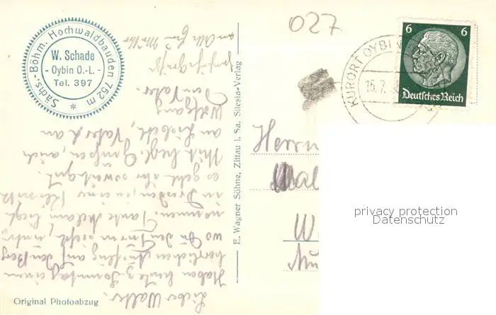 Hain_Oybin Panorama mit Hochwald Zittauer Gebirge Hain_Oybin postalisch gelaufen 1935 Erhaltung siehe scans [FriedD77] Frierer