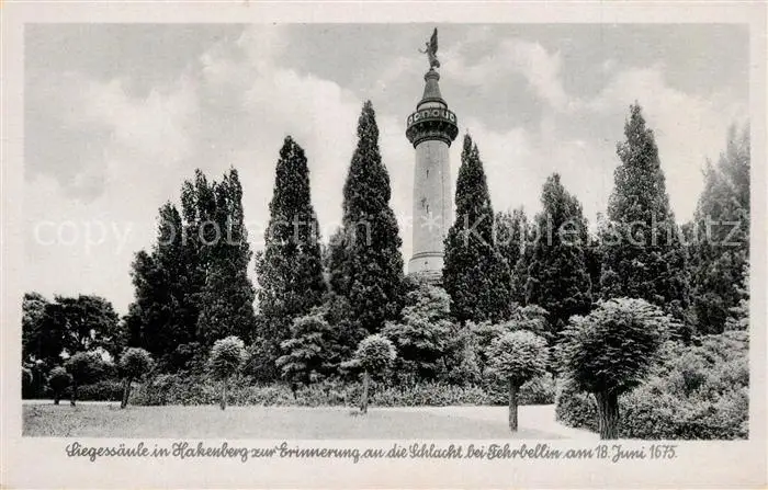 AK / Ansichtskarte Hakenberg_Fehrbellin Siegessaeule zur Erinnerung an die Schlacht bei Fehrbellin 1675 Hakenberg Fehrbellin