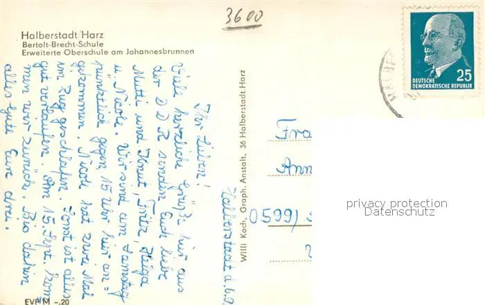 Halberstadt Bertold Brecht Schule Halberstadt postalisch gelaufen 1969 Erhaltung siehe scans [FriedD77] Frierer