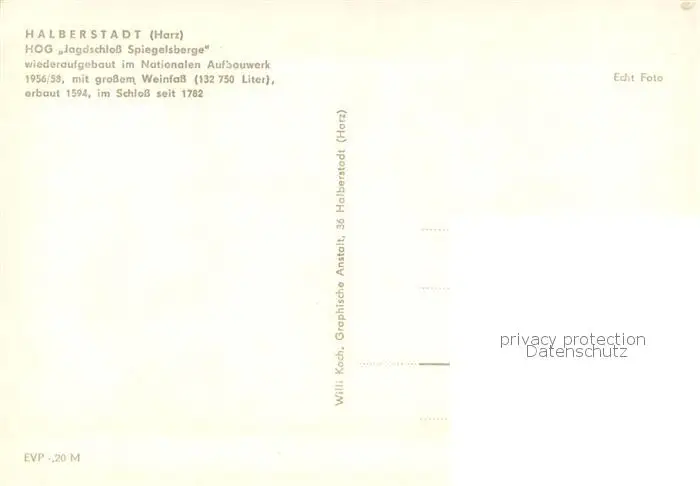 Halberstadt Jagdschloss Spiegelsberge mit grossem Fass Gastraum Halberstadt postalisch nicht gelaufen nach 1965 Erhaltung siehe scans [WerneD78] WernPID7