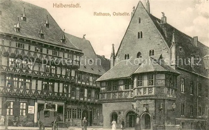 Halberstadt Rathaus Altstadt Pferdekutsche Halberstadt postalisch nicht gelaufen ca. 1910 Erhaltung siehe scans [FriedD77] Frierer