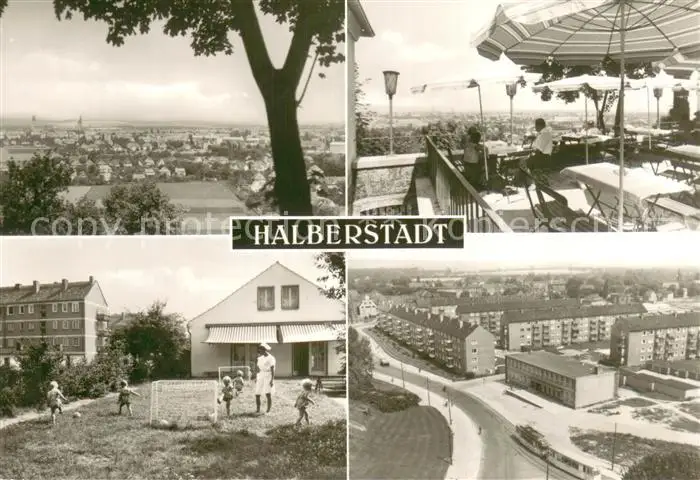 AK / Ansichtskarte Halberstadt Stadtpanorama Restaurant Terrasse Kinderspielplatz Neubauten Halberstadt