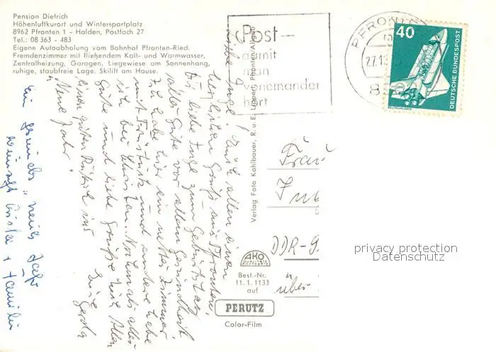 Halden_Pfronten Pension Dietrich Winterpanorama Halden Pfronten postalisch gelaufen 1976 Erhaltung siehe scans [WerneD78] WernPID7