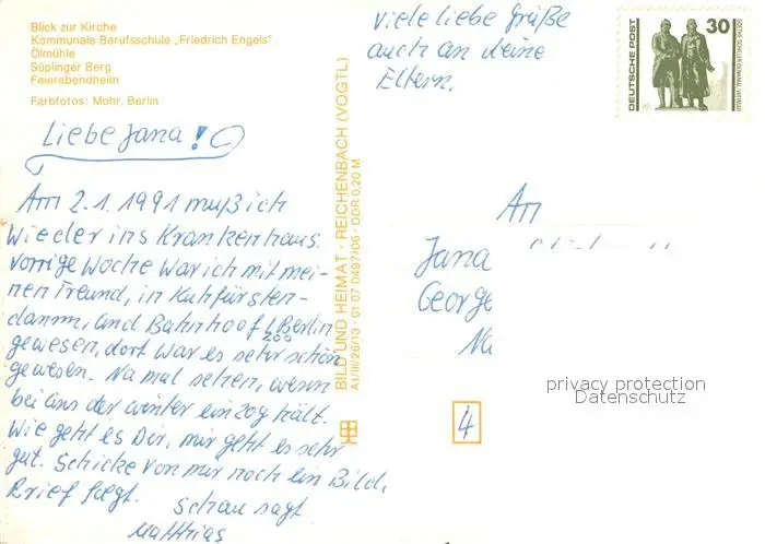 Haldensleben Kirche Berufsschule Friedrich Engels oelmuehle Sueplinger Berg Feierabendheim Haldensleben postalisch nicht gelaufen 1991 Erhaltung siehe scans [FriedD77] Frierer