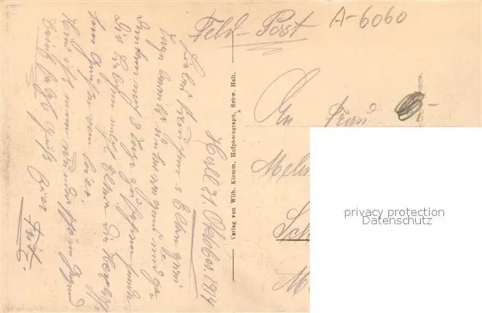 Hall_Schwaben Sulfersteg mit Turm Feldpost Hall Schwaben postalisch nicht gelaufen 1914 Erhaltung siehe scans [WerneD78] WernPID7