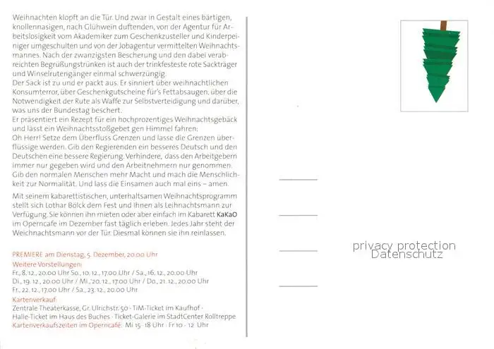 Halle_Saale Kabarett kakao im Operncafe Weihnachtsmann Halle_Saale postalisch nicht gelaufen nach 1965 Erhaltung siehe scans [FriedD77] Frierer