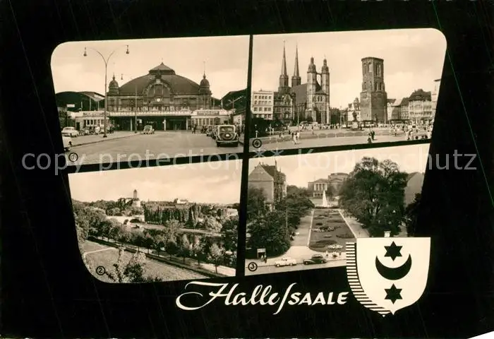 Halle_Saale Marktplatz Hauptbahnhof Burg-Giebichenstein Theater Halle_Saale postalisch nicht gelaufen nach 1965 Erhaltung siehe scans [LiesaD40] LiesID40