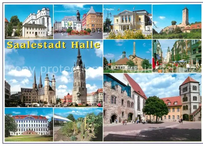 AK / Ansichtskarte Halle_Saale Marktplatz Kirche Franckesche Stiftungen Haendeldenkmal Hallmarkt Turm Fussgaengerzone Opernhaus Halle_Saale