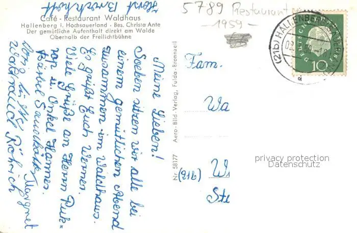 Hallenberg Cafe Restaurant Waldhaus Panorama Hallenberg postalisch gelaufen 1959 Erhaltung siehe scans [WerneD78] WernPID7