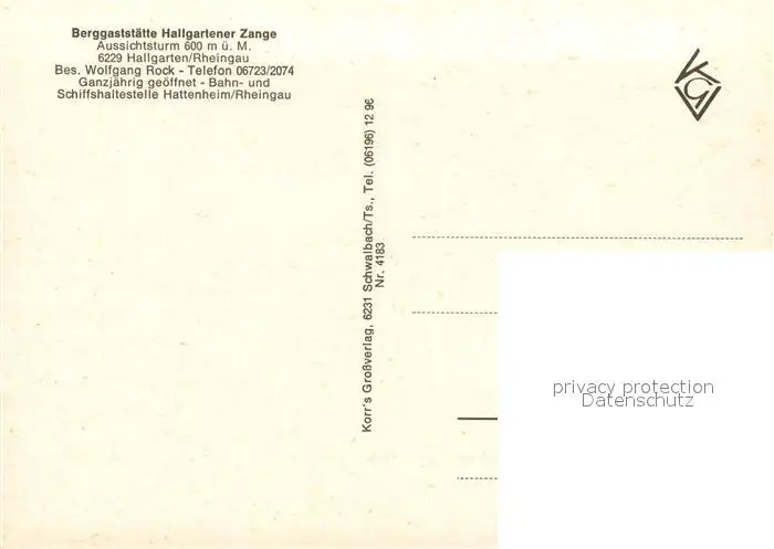 Hallgarten_Rheingau Berggaststaette Zallgartener Zange Terrasse Restaurant Mapper Schanze Ruine Wappen Hallgarten Rheingau postalisch nicht gelaufen nach 1965 Erhaltung siehe scans [FriedD77] Frierer
