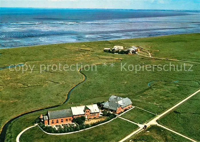 AK / Ansichtskarte Hallig_Langeness Fliegeraufnahme Kirchwarf Hallig_Langeness