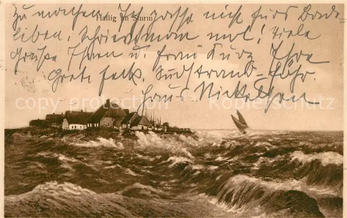 Hallig_Nordsee Hallig im Sturm Hallig Nordsee postalisch gelaufen 1925 Erhaltung siehe scans [WerneD78] WernPID7